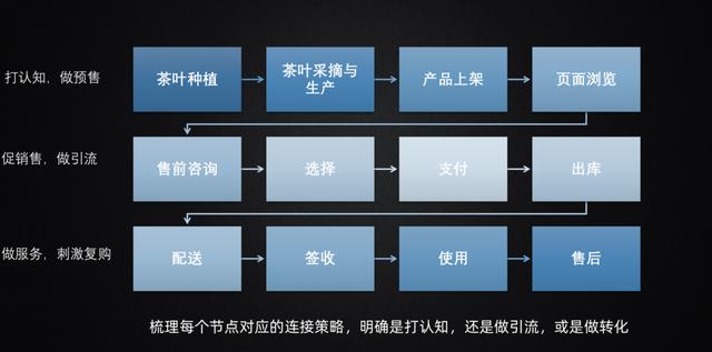比如线下门店,最基本的是这样的:进店、咨询、下单、离开、售后引流。