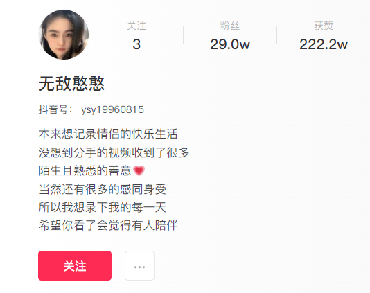 抖音号:ysy19960815