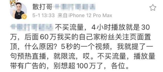 人气低迷散打哥,自己的“豪言”再一次成为了“泡影”!散打哥的直播心态也出现了问题,草草结束了直播后,散打哥便在社交平台发文吐槽ks官方道: