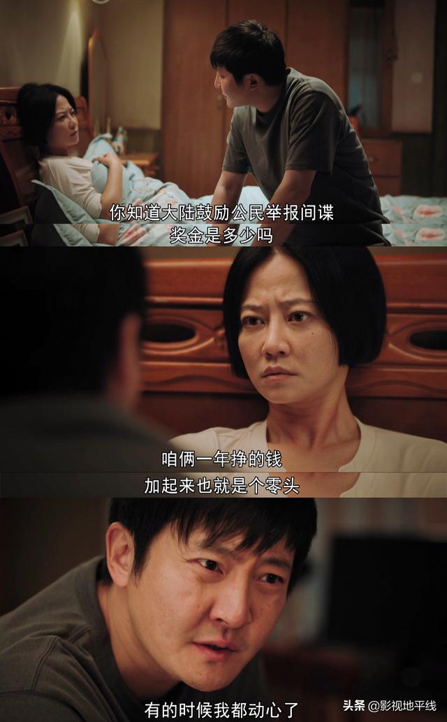 还有就是台词方面,李唐说的这句话“你知道大陆鼓励公民举报间谍奖金是多少吗?咱俩一年挣的钱,加起来也就是个零头,有时候我都心动了”对手。一方面说明我们国家对于间谍的打击力度,另一方面也说明在大陆,间谍生存的空间越来越小。