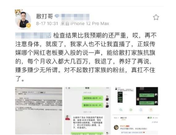 在挂断与二驴的连麦后,网红散打哥又针对这一事情在社交平台上发了一个作品散打哥。表示:检查结果要比预期的更加严重,所以自己必须要“退了”,等病养好了再说……